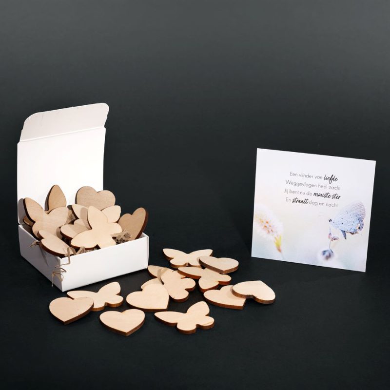 Comfort Box Memory Markers – Holz | Mix aus Schmetterlingen und Herzen 20 Stück