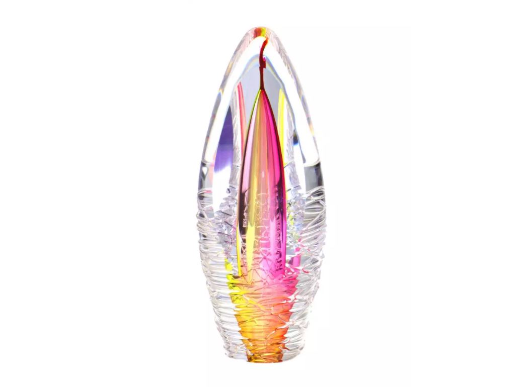 Der Kern des Premium A Line Spirit beherbergt auch den Aschebehälter. Darin können Sie einen Teil der freigegebenen Kremationsasche aufbewahren. Daher ist die Premium A Line Spirit Pink Yellow sehr gut geeignet, wenn Sie einen Teil der Asche verstreuen oder verteilen, den Rest aber aufbewahren möchten. Außerdem bleibt durch die Verwendung von Kristallglas ein Teil der Kremationsasche in der Urne sichtbar. Dies bietet eine zusätzliche Dimension.