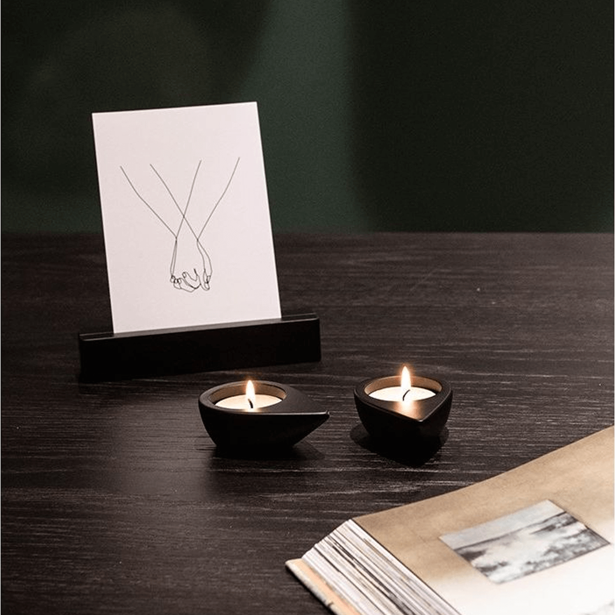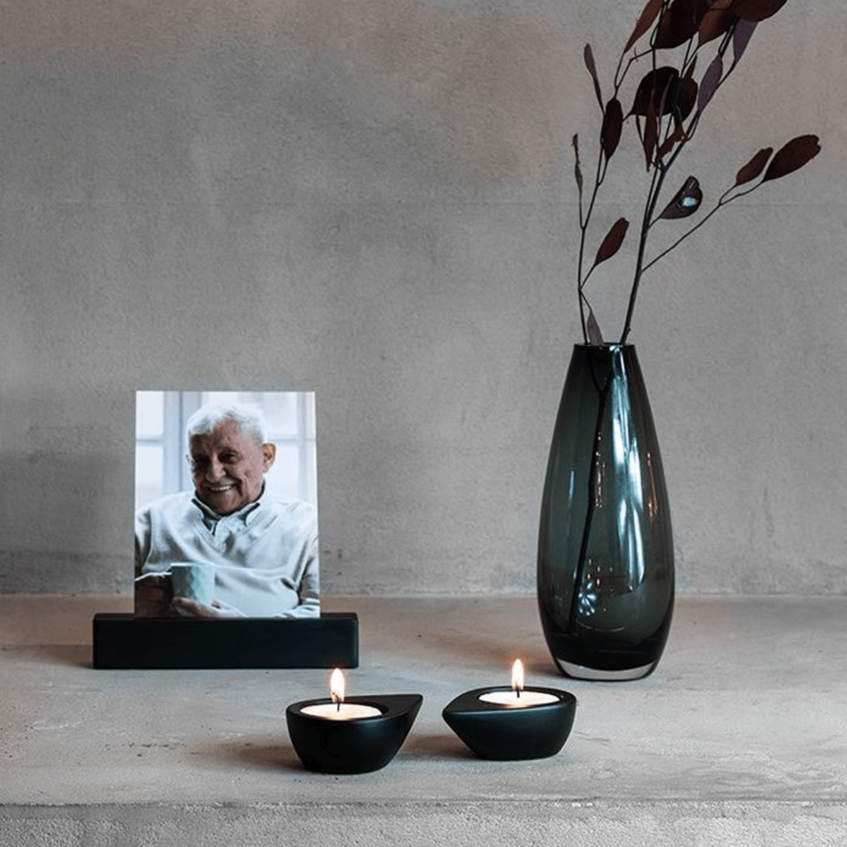 Centraal in het ontwerp staan de twee traanvormige houders. Ze vertellen een verhaal zonder woorden: over verdriet, liefde en verbinding die blijft. Wanneer ze elkaar raken, vormen ze samen een hart of het symbool van oneindigheid. Een stille vertaling van wat niet te zeggen is, maar altijd gevoeld wordt.