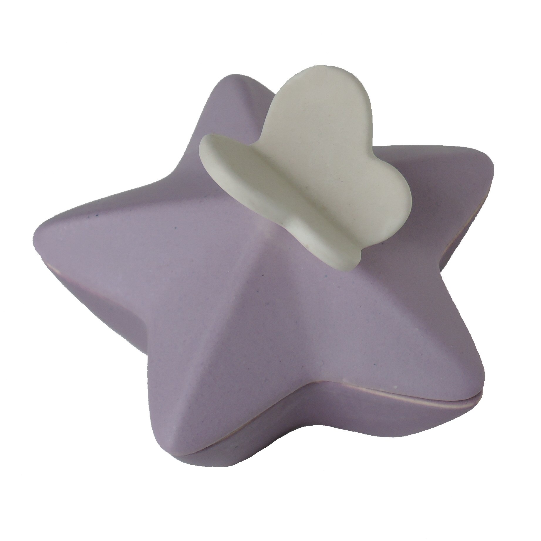Die Mini Urne – Star mit Schmetterling 0,05 Liter Kann z. B. mit einem Namen oder einem Datum personalisiert werden Würden Sie eine andere Farbkombination bevorzugen? Diese Urne ist in verschiedenen Farbkombinationen erhältlich: weiß, weiß-cremefarben, gelb, rosa, lila und hellblau; Bei den hellen Farben (Gelb, Rosa, Lila und Hellblau) wurden Farbschattierungen verwendet; Der Schmetterling kann in Weiß oder Gold tint geliefert werden;