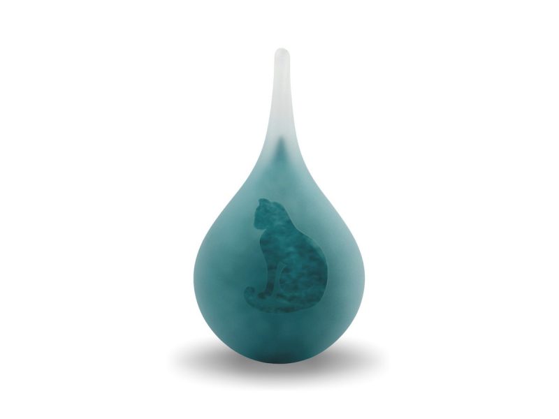 Die Animal Urn – Frosted Drop Cat Sitting | Small 50 ml stammt aus der Frosted Line. Dies ist eine einzigartige Kollektion von handgefertigten Asche-Gedenkornornamenten Die Ornamente sind handgefertigt und aus Kristallglas hergestellt; Die Kollektion Frosted Line besteht aus kleinen und mittelgroßen Ornamenten Das Äußere dieser Urnen ist mit einer sandgestrahlten Beschichtung versehen; Dadurch erhält die Urne ein stumpfes Aussehen. Die Form, in diesem Fall die einer Katze, ist nicht sandgestrahlt. So bleibt die Figur glänzend. Dadurch wird sichergestellt, dass die gewählte Figur auf der Urne gut zur Geltung kommt.